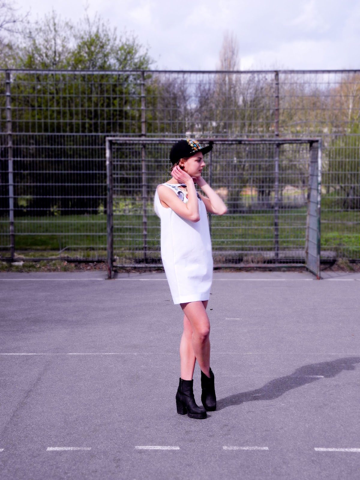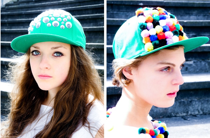 Und wenn ich diese kleine Kollektion nun so betrachte, dann denke ich: vielleicht bin ich doch ein echtes Großstadtkind. Vielleicht sind wir das heute alle, wenn wir mit origineller Cap auf dem Kopf das Haus verlassen und so tun, als wären wir furchtbar rebellisch, obwohl wir doch eigentlich nur wieder einem neuartigen, wahrscheinlich flüchtigem Trend der Modewelt verfallen sind. Doch warum auch nicht? Ich habe durch dieses spaßige Kunstprojekt die Cap wahrlich lieben gelernt. An grauen Tagen kann man sich herrlich unter dem großen Schirm verstecken, düster drein schauen, so viel man will, und lauthals zur aus den Ohrstöpseln tönenden Hiphopmusik mithipphoppen. Manchmal bin ich eben nicht in der Stimmung für charmante Eleganz. Und falls doch, so kann ich zur Cap ja immer noch das passende Kleid anziehen.