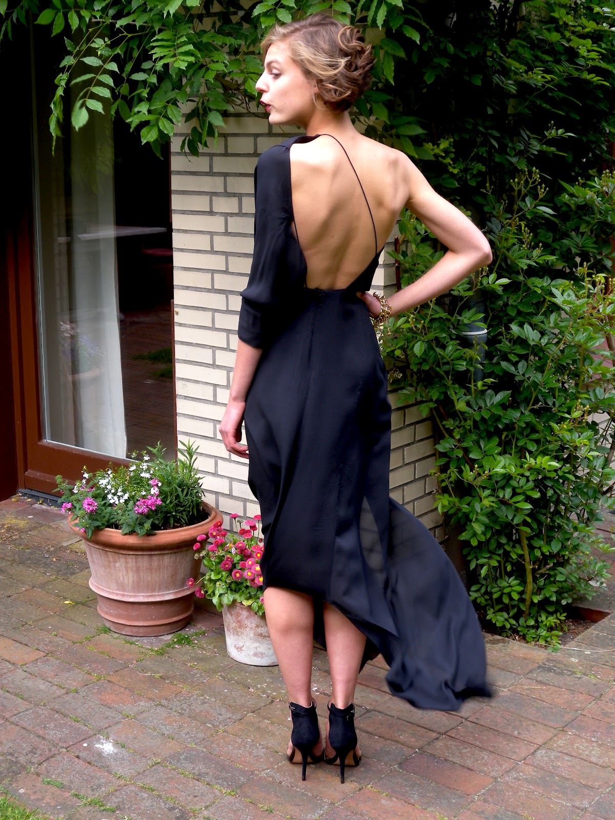 Ja, ich weiß, Acne Acne Acne, immer nur Acne – aber Verzeihung, diese Schweden treffen nun mal mit ihren unaufdringlich-eleganten Kleidern Saison für Saison verlässlich mein dezentes Stilempfinden. Dennoch verlief das erste Zusammentreffen mit dem einzigartigen Emile-Kleid aus der vergangenen Herbst-Winter-Kollektion des Hauses eher spontan – etwas gelangweilt stromerte ich in der Vorweihnachtszeit in der Stadt herum, kam rein zufällig (naja, so zufällig nun auch wieder nicht) bei Acne vorbei und probierte dort aus Spaß die auf dem Bügel so unscheinbar anmutende, stahlblaue Seidenrobe an. Und wie das so ist: kaum ist man in ein solches Traumkleid geschlüpft, noch dazu im angenehmen Oasen-Ambiente des Hamburger Acne-Stores, so ist es vorbei mit der Vernunft. Ich konnte nicht anders, Emile schien wie gemacht für Clairette höchstpersönlich, mit dieser exquisiten diagonalen Silhouette, dem beeindruckenden Rückenausschnitt, dem verführerischen Beinschlitz – und so bekam die kleine Acne-Familie in meinem Kleiderschrank, bis dato aus Rita und einem Paar namenloser Sommersandalen bestehend, noch vor dem Christfest Zuwachs.