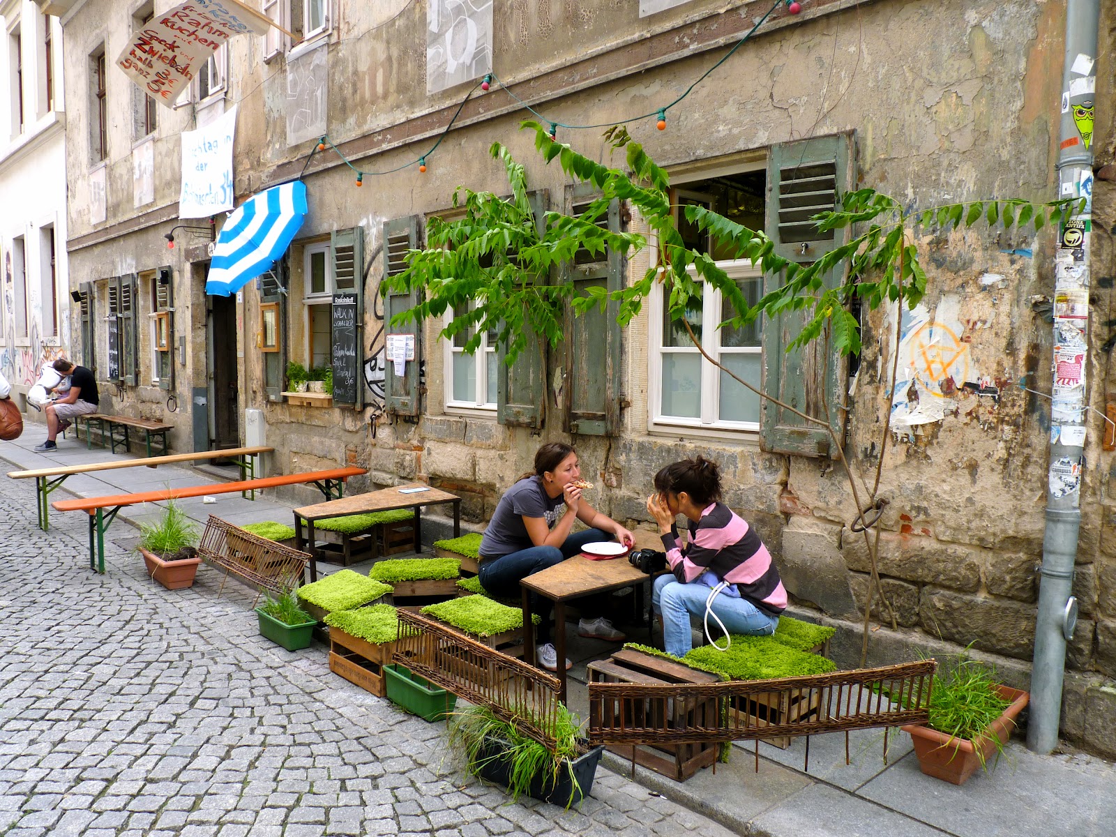 Welch eine Stadt! Der inoffizielle Beiname der sächsischen Hauptstadt, „Elbflorenz“, ist wohl verdient: Entlang des Flussufers reihen sich malerisch die herrlichsten barocken Bauten, die selbst internationale Kunstkenner ins Schwelgen bringen sollten. In der Äußeren Neustadt bezogen wir den schmucken Mondpalast, ein lässiges Hostel mitten im coolsten Viertel Dresdens, und lernten innerhalb weniger Stunden einen sympathischen Studenten nach dem anderen kennen, hin und wieder auch mal einen im farbbespritzten Outfit und mit leichter Bierfahne mitten auf der Straße tanzend, denn wie es der Zufall will, waren wir just zum Ausklang des Stadtteilfests BRN (Bunte Republik Neustadt) angereist. Beim spontanen Elektro-Rave direkt vor unserer Hosteltür, wo irgendein DJ sein Lager aufgeschlagen hatte, kamen wir dann erst richtig in Berührung mit dem einzigartigen Geist dieser Stadt, die frei nach dem Motto zu leben scheint: tu einfach, wonach dir gerade ist. Tanz barfuss auf der Straße, mach dich zum Affen, ist doch egal wie du dabei aussiehst, das Leben ist schön.