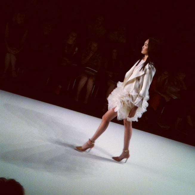 Seit bereits zwei Tagen hält die Mercedes Benz Fashion Week Berlin endlich wieder einmal die Hauptstadt so richtig schön auf Trab, und auch ich komme erst jetzt zu einem kleinen Update von der Modewoche in Deutschlands wichtigster Fashionmetropole, gerade hat sich eine Pause in meinen randvollen Terminkalender geschlichen. Seit gestern früh bin ich nun hier in Berlin, fühle mich in meiner Lieblingsstadt wie zuhause, eine Veranstaltung jagt die nächste, und zwischen den Shows kommt man teils, während des ständigen Hin-und-Her, von einer Offsite-Location zur nächsten und wieder zurück zum MB-Zelt an der Siegessäule, kaum noch zum Luftholen. Aber was klage ich: eine glamourösere Zeit kann ich mir nicht vorstellen, ich liebe die Fashion Week, die aufregende Hektik, die elegant gekleideten Gäste (ja, das freche Berlin ist durchaus zu Eleganz fähig, stelle ich fest!) und diesen einzigartigen Moment bei der Show, wenn endlich alle Gäste Platz genommen haben, die Musik einsetzt, das Licht angeht, und in viel zu kurzen 15 Minuten die exklusive Mode für die nächste Sommersaison über den Laufsteg rauscht.