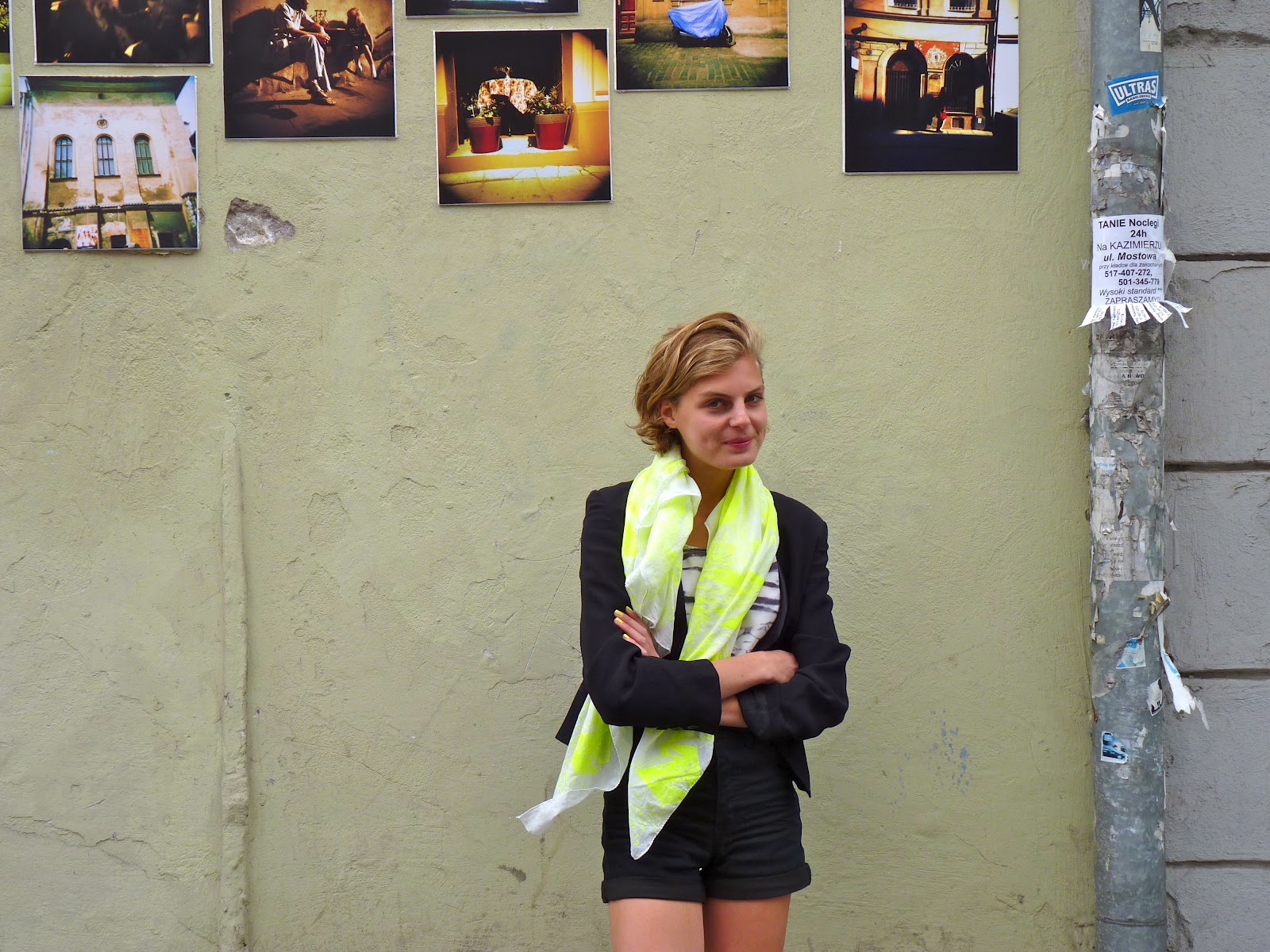 Jacke und Schuhe: Vintage, Top: Weekday, Shorts: Monki |
